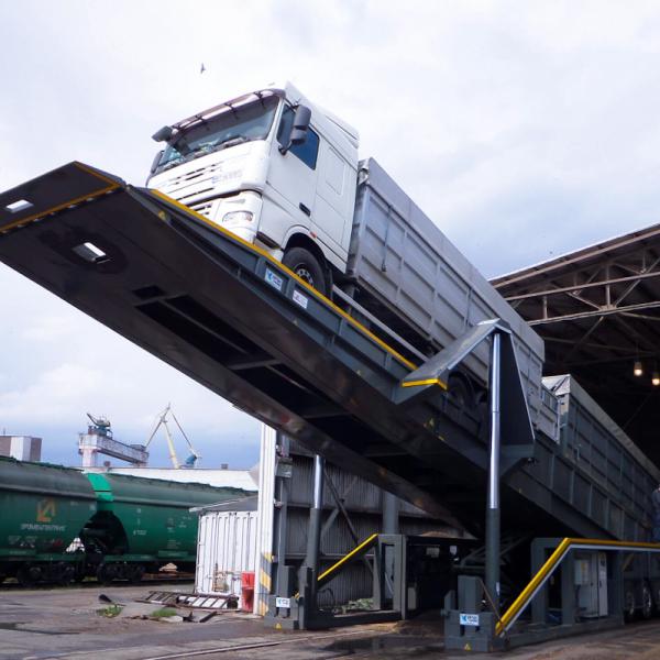 • Автомобилеразгрузчики. Это устройство позволяет произвести разгрузку грузового автомобиля в кратчайшие сроки. Всего за несколько минут сыпучий груз выгружается на специальную платформу.